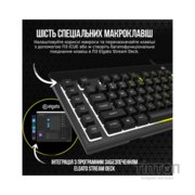 ІГРОВА КЛАВІАТУРА K55 RGB PROРОЗПОЧНІТЬ СВІЙ ПЕРЕМОЖНИЙ РЯД НАЛАШТУЙТЕ ПІДСВІЧУВАННЯНалаштуйте будь-який з шести вбудованих ефектів підсвічування, визначте колір кожної зони підсвічування або програмуйте власні світлові профілі для кожної з п'яти зон RGB-підсвітки в програмному забезпеченні CORSAIR iCUE. ЗАХИСТ ВІД РОЗЛИТОЇ РІДИНИКлас захисту IP42 оберігає клавіатуру від випадкового розливу рідини та накопичення пилу, щоб ваш ігровий процес ніколи не зупинявся. КЕРУВАННЯ ЗА ДОПОМОГОЮ МАКРОСІВОтримайте перевагу в грі завдяки шести спеціальним повністю програмованим клавішам, які дозволяють створювати складні макроси, переназначати функції клавіш за допомогою програмного забезпечення CORSAIR iCUE та керувати потоковою передачею відео за допомогою спеціальних команд програмного забезпечення Elgato Stream Deck. ВІЗМІТЬ КОНТРОЛЬ У СВОЇ РУКИРЕЖИМ БЛОКУВАННЯ КЛАВІШІ WINDOWSУ цьому режимі ви ніколи не перервете гру випадково.