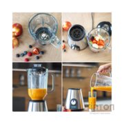 Цей елегантний стаціонарний блендер First порадує всіх, хто любить смузі, коктейлі, тощо. Створювати улюблені витвори зі свіжих і заморожених фруктів, овочів, молока та йогурту або готувати колотий лід для прохолодних напоїв завдяки функції пульсу – це просто. Все одним натисканням кнопки: ще ніколи не було так легко готувати смачні соки, смузі, молочні коктейлі, фраппе та шоти. Ви також можете приготувати смачні фруктові пюре. Потужний блендер оснащений шістьма надгострими лезами з нержавіючої сталі, 1,5-літровим скляною чашою з кришкою, а також нековзкими гумовими ніжками, запобіжником і захистом від перегріву.