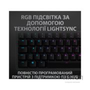 Підсвітку клавіатури G512 можна налаштувати, присвоївши будь-якій клавіші один з 16.8 млн відтінків. Крім користувацьких анімаційних ефектів для клавіатури можна використовувати також безліч ефектів із попередньо заданими параметрами. Завдяки технології LIGHTSYNC підсвітка реагує на звуки, зміну зображення на екрані, а також певні дії в іграх. Все це забезпечує ефект повного занурення у віртуальну реальність, якого неможливо досягти у разі використання звичайної RGB-підсвітки. Для використання додаткових параметрів потрібне ПЗ Logitech G HUB, яке можна завантажити на сторінці.