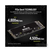 Corsair MP600 GS – внутрішній SSD накопичувач, який призначений для користувачів, які бажають перевести свою систему на швидкісне сховище даних. Оснащений SSD-контролером початкового рівня Phison PS5021-E21T, побудований на базі пам'яті 3D TLC. Підтримує шифрування AES і додаток для управління SSD Corsair Toolbox. Це програмне забезпечення для SSD відображає звичайну детальну інформацію про накопичувач Corsair і пропонує користувачам надлишкову пам’ять, SMART, клонування, безпечне стирання та інструменти оптимізації.Використовуючи технологію PCIe Gen4 NVMe 1.4 для максимальної пропускної здатності, MP600 GS забезпечує неймовірну продуктивність.Особливості:- підтримка високошвидкісної передачі даних;