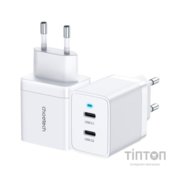 Зарядний пристрій із двома портами USB-C. Підтримує сучасні протоколи швидкого заряджання.