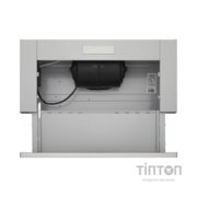 Вбудована телескопічна витяжка, режим роботи відведення, продуктивність 650 куб.м/год, 2 швидкості, приховане кнопкове управління, світлодіодна лампа, алюмінієвий жировий фільтр, ширина 59.6 см.