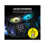СВО CORSAIR H100x RGB ELITE поєднує в собі чудове охолодження та вишукану естетику, обладнаний вентиляторами CORSAIR SP120 RGB ELITE Series PWM, які забезпечують потужний повітряний потік завдяки технології AirGuide. Завдяки сучасному дизайну головки помпи та приголомшливим світловим ефектам RGB, H100x RGB ELITE поєднує в собі чудову продуктивність охолодження та чарівне освітлення. Керування освітленням здійснюється через роз'єм ARGB 5V, широко сумісний із величезною кількістю материнських плат, або за допомогою програмного забезпечення CORSAIR iCUE (потрібен контролер CORSAIR iCUE, продається окремо). Завдяки термооптимізованій мідній холодній пластині та простому встановленню на новітні процесори Intel® і AMD®, H100x RGB ELITE вмикає підсвітку, охолоджуючи ваш процесор.