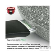 Надзвичайно корисний індикатор нагріву, що дозволить одночасно готувати корисну їжу, заощаджувати енергію та гроші та врятувати сковороду від перегріву. Індикатор знаходиться на захисному екрані полум'ягасника (металевої частини між ручкою та сковородою). Коли сковорода холодна - полум'ягасник має чорний колір. Коли сковорода розігріта до температури достатньої для початку приготування, екран полум'ягасника біліє і на ньому проявляється зелений логотип Flonal. Таким чином Ви зможете почати готувати в правильний момент і подовжите термін служби своєї сковороди з антипригарним покриттям.NO SLIP BOTTOM