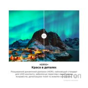 HDR10+ Краса в деталях Розширений динамічний діапазон (HDR), найновіший стандарт для UHD-контенту, подарує неперевершений досвід перегляду із винятковою яскравістю, винятковою деталізацією тіней і яскравими кольорами. Сидіть спокійно, пориньте в улюблений фільм та насолоджуйтеся неймовірними деталями зображення, які задумали автори фільму.