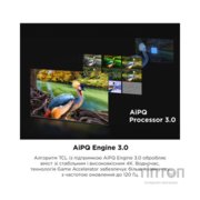 AiPQ Engine 3.0 Алгоритм TCL із підтримкою AiPQ Engine 3.0 обробляє вміст зі стабільним і високоякісним 4K. Водночас, час технологія Game Accelerator забезпечує більш плавну гру з частотою оновлення до 120 Гц. Ніколи не пропустіть жодної деталі швидких рухів Алгоритм MEMC зменшує розмитість відображення руху, усуває розриви зображення та гарантує шовковисту гладку сцену.