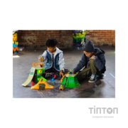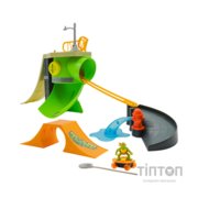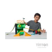 Запустіть іграшку за допомогою лаунчера, поставте на підставку над люком, а коли іграшка стрибне і впаде на люк, його кришка перекинеться та черепашка поїде до низу.