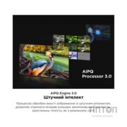 Штучний інтелект Процесор обробки якості зображення зі штучним інтелектом може сприймати і мислити як живий розум, фіксуючи всі деталі реального світу в своїй власній базі даних і здійснюючи моделювання та оптимізацію на основі аналізу людського сприйняття. В результаті ви отримуєте яскраві кольори, виняткову контрастність і кристальну чіткість, як у реальному світі.