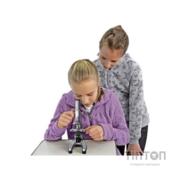 Незважаючи на те, що цей прилад рекомендований для дітей, він має потужну оптику, здатну збільшити зображення до 1200 крат. Подвійне підсвічування дозволить дослідити прозорі і непрозорі зразки. Широкий набір аксесуарів, зразків і препаратів забезпечать моментальний старт і зроблять дослідження ще більш захоплюючими.Торгова марка Bresser представляє широкий вибір традиційно якісних мікроскопів будь-якої складності і призначень.Дана модель рекомендована дітям починаючи від 8-ми років і поставляється з широким набором аксесуарів для препарування, об'єктивів, зразків і препаратів, упакованих в компактний жорсткий пластиковий кейс. Це дозволяє без зволікань приступити до досліджень в домашніх умовах без додаткових витрат часу і грошей.Максимальне збільшення об'єктива становить 40х, завдяки чому досягається висока ступінь оптичної роздільної здатності. Крім того, сумарне оптичне збільшення досягає 1200х і дозволить спостерігати дрібні компоненти мікросвіту.Підсвічування препарату можливе як за допомогою відбитого дзеркалом природного освітлення, так і за допомогою лампи, яка живиться від двох батарей АА. Для живлення підсвічування вистачає двох батарей типу АА, що не обмежує використання мікроскопа в польових умовах.Монокулярная насадка із змінним кутом нахилу робить спостереження більш комфортним, а затиски предметного столика не дають при цьому зразку зісковзнути.