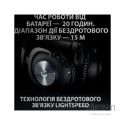 РОЗРОБЛЕНА СПІЛЬНО З професійним гравцем. СТВОРЕНО ДЛЯ ПЕРЕМОГИ.Перейдіть на новий рівень комунікації і звучання, необхідних для перемоги - вибирайте гарнітуру з підтримкою технології бездротового зв'язку LIGHTSPEED, яка не обмежує пересувань гравця.Бездротова технологія LIGHTSPEEDЗавдяки технології бездротового зв'язку LIGHTSPEED - унікальну розробку компанії Logitech G - користувачі зможуть назавжди забути про затримки сигналу, швидкої розрядки батарей і проблеми з підключенням. Гравці виходять на небачений раніше рівень свободи, адже дальність дії зв'язку досягає 15 м, а час роботи батареї - 20 і більше годин. Підключення є дуже надійним за рахунок використання частоти 2,4 ГГц.3Время роботи батареї залежить від режиму експлуатації та використовуваного комп'ютера. Заявлений час роботи гарнітури без підзарядки (до 20 годин) розраховане при 50% гучності.ІННОВАЦІЙНА ТЕХНОЛОГІЯ BLUE VO! CEМікрофон втілив в собі інноваційну технологію BLUE VO! CE, яка дає користувачеві можливість застосовувати різні фільтри голосу в режимі реального часу. За допомогою цих фільтрів голосу можна додати більш чітке, насичене і професійне звучання, знизивши рівень фонового шуму, зменшивши динамічний діапазон і усунувши супутнє шипіння. Оцініть переваги настроюється звуку студійної якості під час гри завдяки технології BLUE VO! CE і використання ігрового програмного забезпечення G HUB4РАСШІРЕННИЕ МОЖЛИВОСТІ, ТАКІ ЯК ТЕХНОЛОГІЯ BLUE VO! CE і об'ємним звучанням DTS HEADPHONE: X 2.0, ДОСТУПНІ ТІЛЬКИ НА ПК З ВСТАНОВЛЕНИМ ігрового програмного забезпечення LOGITECH G HUB. ТЕХНОЛОГІЯ BLUE VO! CE, ЗОКРЕМА, ПОЛІПШУЄ ЯКІСТЬ ВІДТВОРЕННЯ ЗВУКУ ПО ТЕХНОЛОГІЇ DTS.НЕПЕРЕВЕРШЕНЕ ЗРУЧНІСТЬ І ДОВГОВІЧНІСТЬДужка з високоякісного алюмінію і армоване сталлю наголов'я відрізняються мінімалістичним і в той же час елегантним дизайном. Виключно зручні амбушюри з пеноматериала з ефектом пам'яті і наголов'я мають покриття з м'якої штучної шкіри. Завдяки продуманій конструкції і вдалому вибору матеріалу вони забезпечують пасивну шумоізоляцію. Крім того, на гарнітуру можна встановити більш м'які амбушюри з велюровим покриттям.ТЕХНОЛОГІЯ ОБ'ЄМНОГО ЗВУЧАННЯ НОВОГО ПОКОЛІННЯТехнологія DTS Headphone: X 2.0 дозволила в повній мірі реалізувати можливості формату 7.1 за рахунок високої чіткості звучання, поліпшеної якості відтворення низьких частот, а також ефектів наближення і віддалення джерела звуку. Завдяки новому способу визначення відстані тепер можна оцінити відстань до джерела звуку, щоб ще точніше обчислити розташування противника! 5Расшіренние можливості, такі як технологія Blue VO! CE і технологія об'ємного звучання DTS Headphone: X 2.0, доступні тільки на ПК з встановленим програмним забезпеченням Logitech G HUB. Технологія Blue VO! CE, зокрема, покращує якість відтворення звуку за технологією DTS.ДИФУЗОРИ PRO-G ДІАМЕТРОМ 50 ММДифузори PRO-G виготовлені з комбінованого сітчастого матеріалу, що забезпечує неймовірно чітке і точне відтворення звуку. Завдяки їм користувачі зможуть легко розрізняти звуки кроків і навколишнього середовища, що дасть величезні переваги під час гри. Оснастивши гарнітуру PRO-G нового покоління інноваційними дифузорами діаметром 50 мм, розробники домоглися небаченої раніше точності звукопередачи в більшому діапазоні частот, а також більш якісного відтворення низьких частот.СЕРІЯ PROБездротова гарнітура PRO X поповнила асортимент в