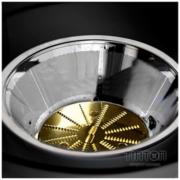 Завдяки його конструкції і швидкості обертання 19000 об/хв вичавляється на 30% більше соку. Крім того, відрізний диск покритий титаном, що забезпечує більш міцну твердість і гостроту.